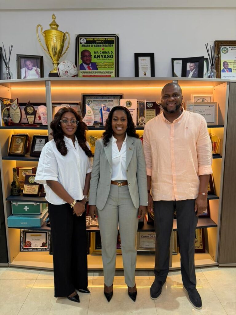 In a remarkable demonstration of pan-African partnership, the Chairman and CEO of CAADES Group, Dr. Chimaobi D. Anyaso, and his wife, Adanna Anyaso recently hosted Hon. Kadiva Diana Hamutumwa, the Governor of Ohangwena Region in the Republic of Namibia, at the company’s Lagos office.