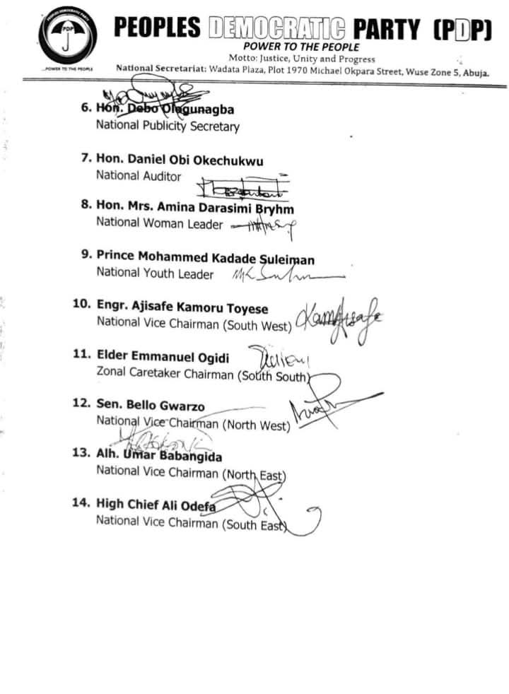Those affected include the National Secretary, Senator Samuel Anyanwu; the National Organising Secretary, Captain Umar Bature; the National Legal Adviser, Kamaldeen Ajibade (SAN); and his Deputy, Okechukwu Osuoha.