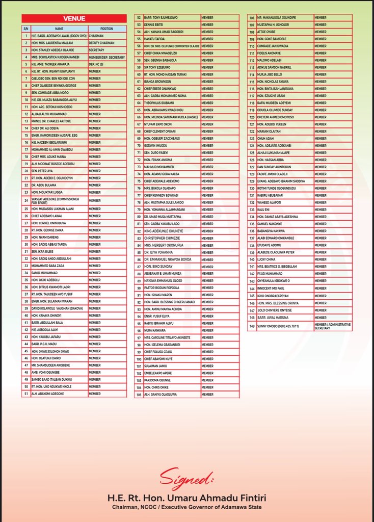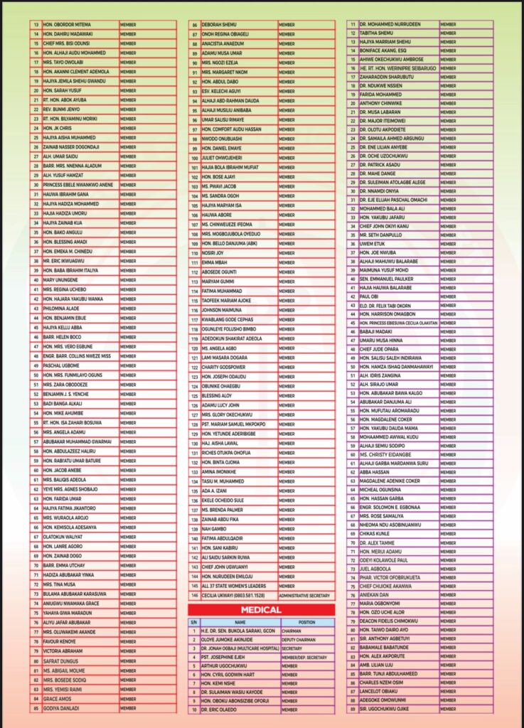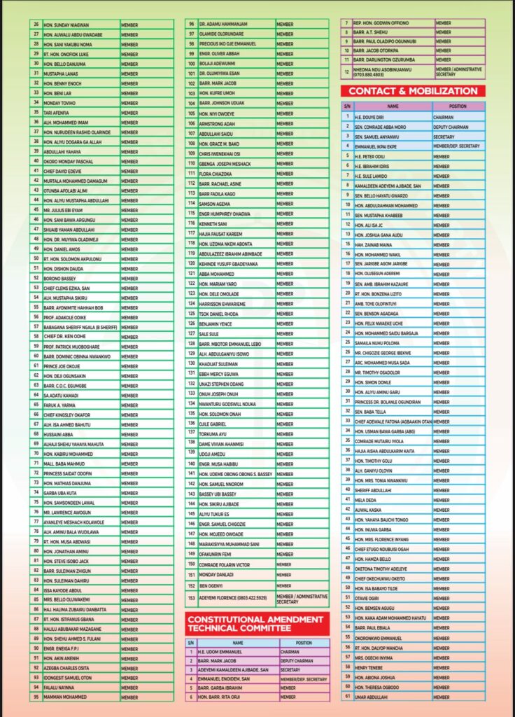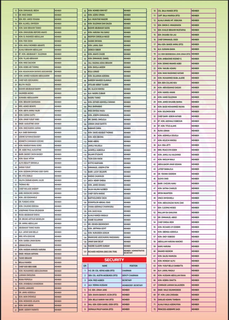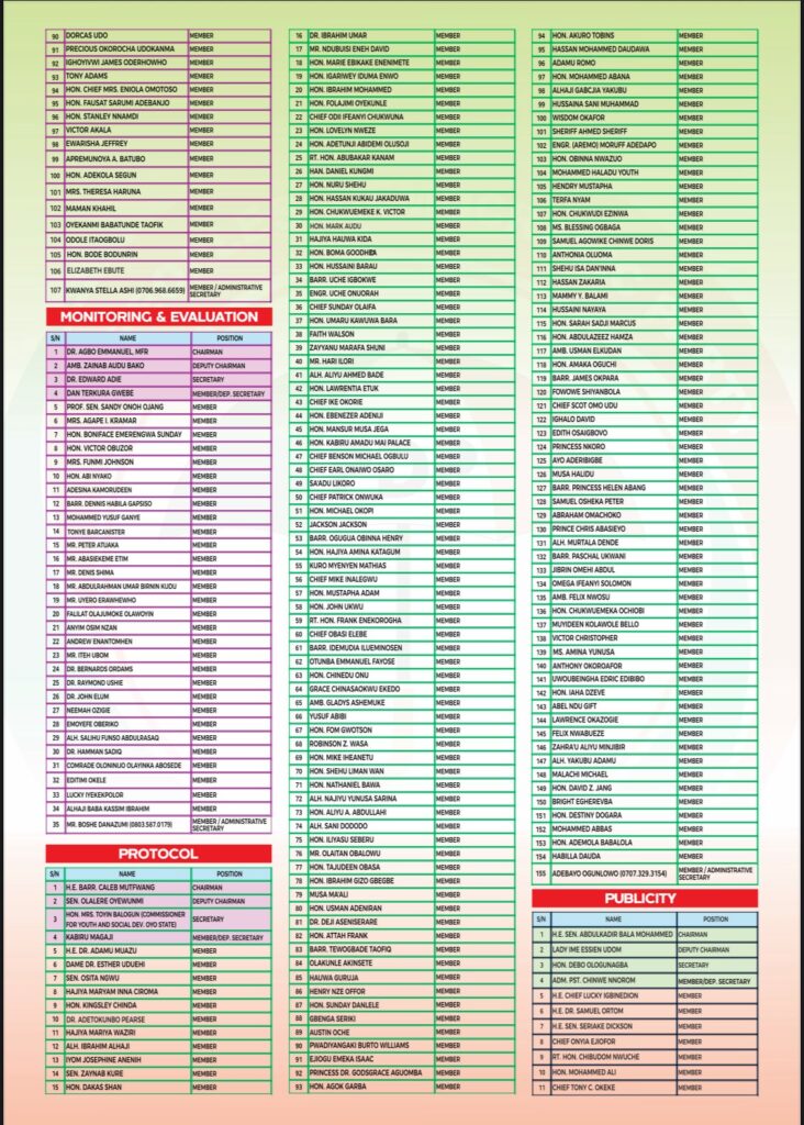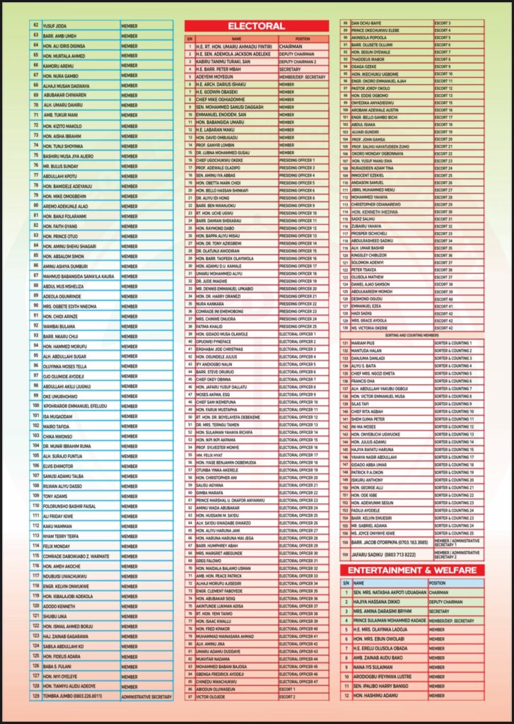 The full list of the National Convention Organizing Sub-Committees has been released and made available for reference.