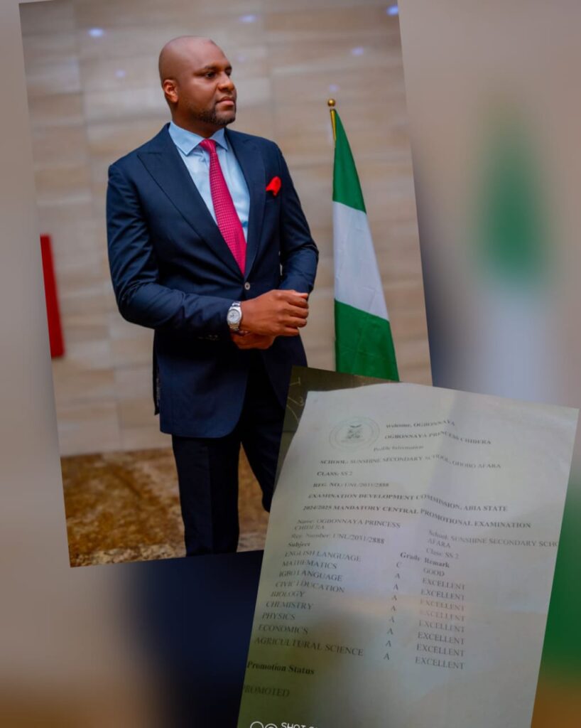 Chidera Princess Ogbonnaya, a student of Sunshine Secondary School, Ohobo Afara, Umuahia, scored 7 A’s in core science subjects and a C in English Language in the recently released West African Examinations Council (WAEC) results. Her family, overwhelmed with joy, shared the result with her benefactor, Dr. Chimaobi Desmond Anyaso, who described the performance as “deeply encouraging and motivating.”