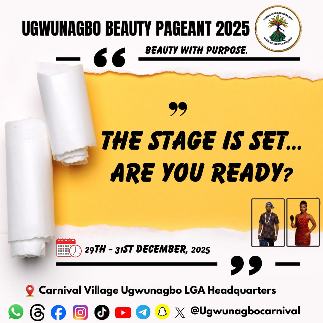 Preparations are in top gear as Ugwu­nagbo Local Government Area counts down to the much-anticipated Ugwu­nagbo Carnival 2025, scheduled to hold from December 29 to 31, 2025.