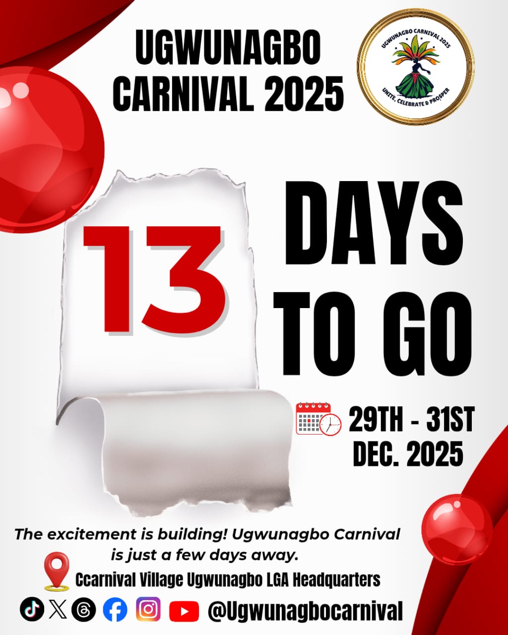 Ugwu­nagbo Carnival 2025 Begins in 13 Days, Let the Countdown begin